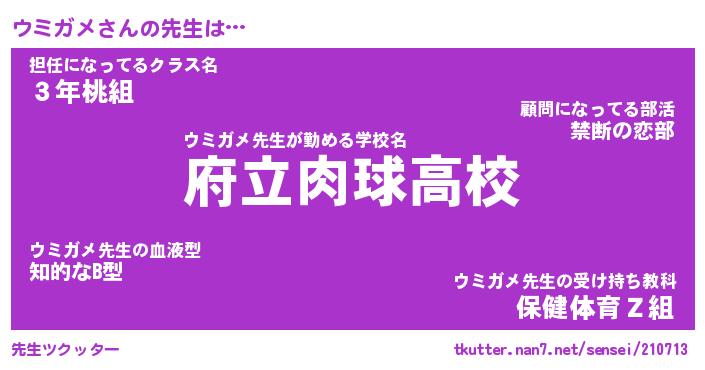 | 意味不明あだ名 | 『ペロリンウミガメ』『永久保存ウミガメ』 |