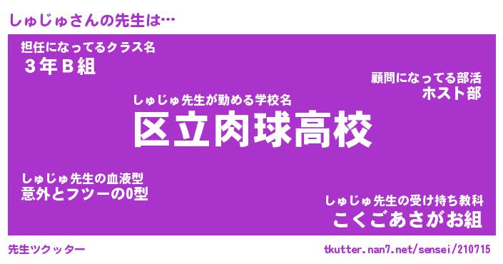 | ヒーロー風カッコイイあだ名 | 『スーパーシュジュ』『銀牙騎士シュ』 |