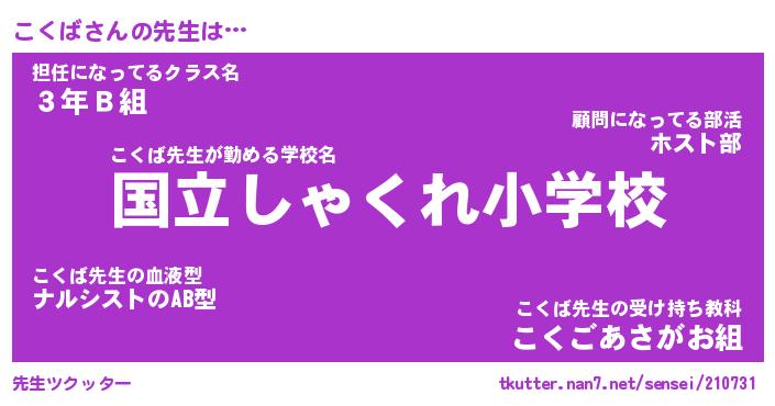 | ヒーロー風カッコイイあだ名 | 『スーパーコクバ』『ウルトラこくばマン』 |