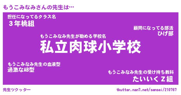 | 意味不明あだ名 | 『ペロリンもうこみなみ』 |
