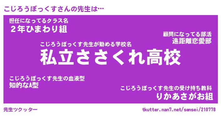 | 男性向けラノベタイトル風あだ名 | 『こじろうぼっくすの憂鬱』 |