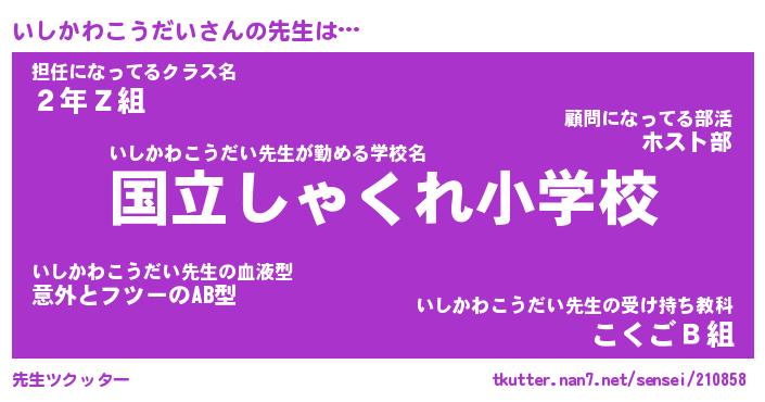 | 伝説のあだ名 | 『伝説のスナイパーいしかわこうだい』 |