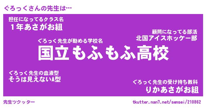 | ヘコむあだ名 | 『ぐろにゅー』『つくし』『ぐろっぺ』 |