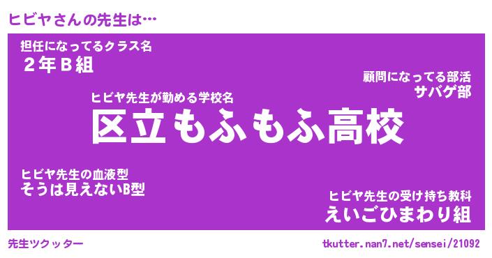 | ファンタジー風あだ名 | 『ヒビフェル』『エターナルヒビヤー』 |