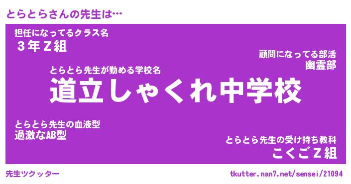 | 意味不明あだ名 | 『ペロリンとらとら』『永久保存とらとら』 |