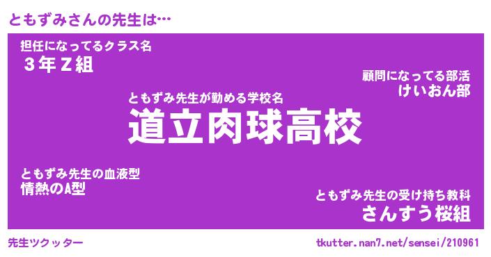 | ファンタジー風あだ名 | 『トモフェル』『エターナルトモズミー』 |