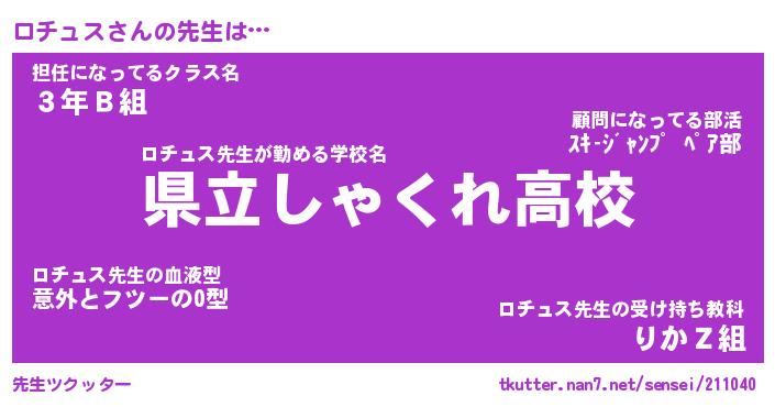 | ポケモン風あだ名 | 『ロチチュウ』『ロチュダネ』 |
