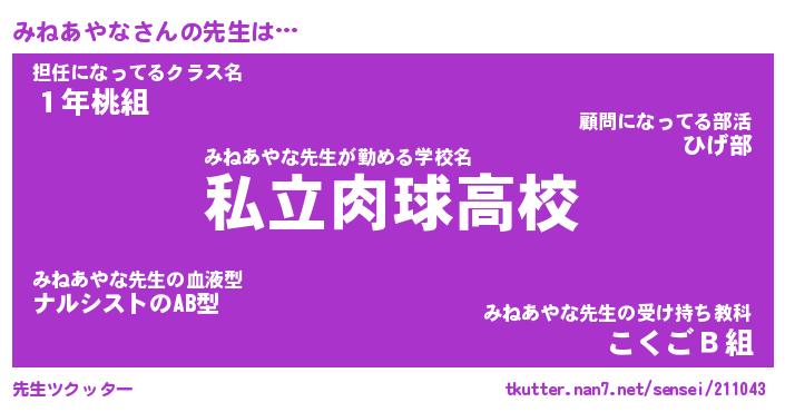 | 肩書あだ名 | 『みねあやなCEO』『みねあやな国家主席』 |