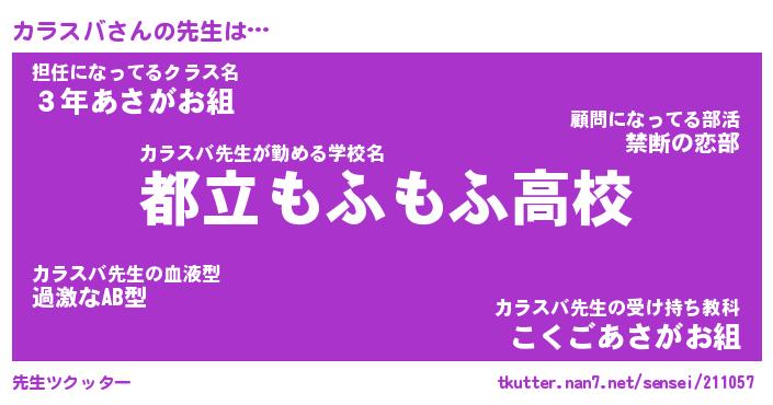 | ポケモン風あだ名 | 『カラチュウ』『カラスダネ』 |