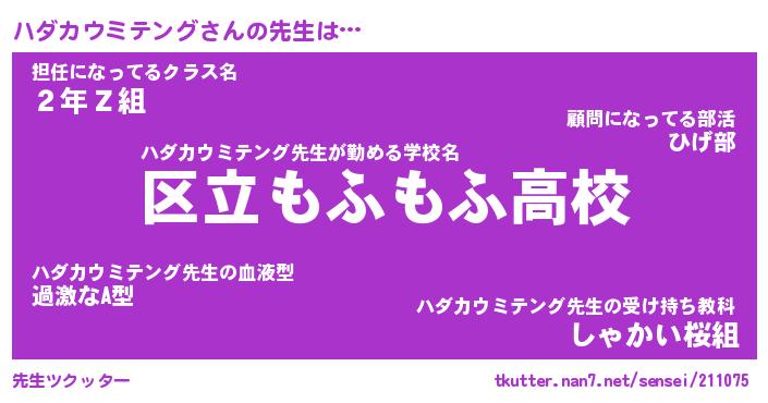| 2回繰り返すあだ名 | 『ハダハダ』『ハハダダ』『ぬるぬる』 |