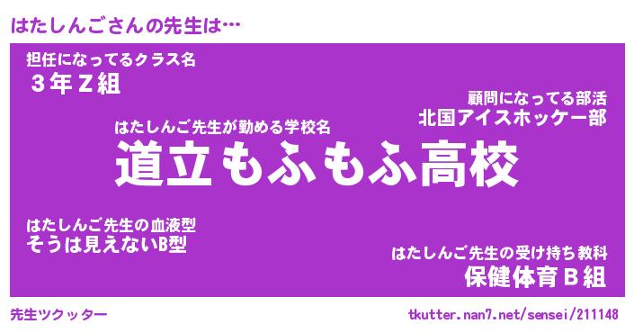 | ファンタジー風あだ名 | 『ハタフェル』『エターナルハタシンゴー』 |