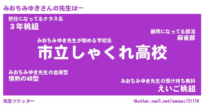 | 伝説のあだ名 | 『伝説のスナイパーみおちみゆき』 |