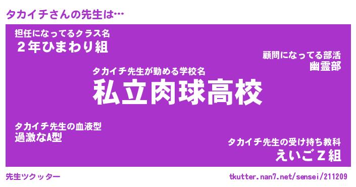 | 意味不明あだ名 | 『ペロリンタカイチ』『永久保存タカイチ』 |