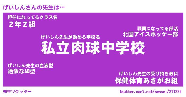 | 2回繰り返すあだ名 | 『げいげい』『げげいい』『くたくた』 |