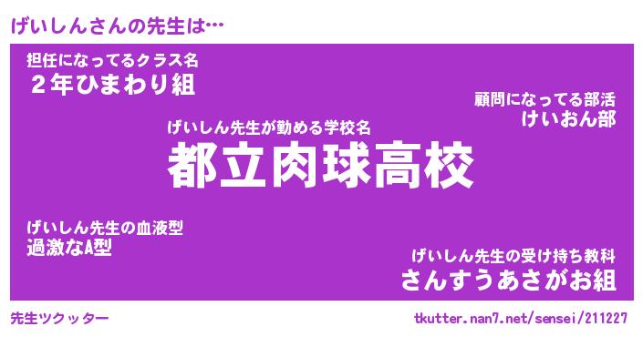 | ヘコむあだ名 | 『げいふぇ~』『なまこ酢』 |