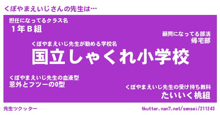 | 肩書あだ名 | 『くぼやまえいじ御曹司』 |