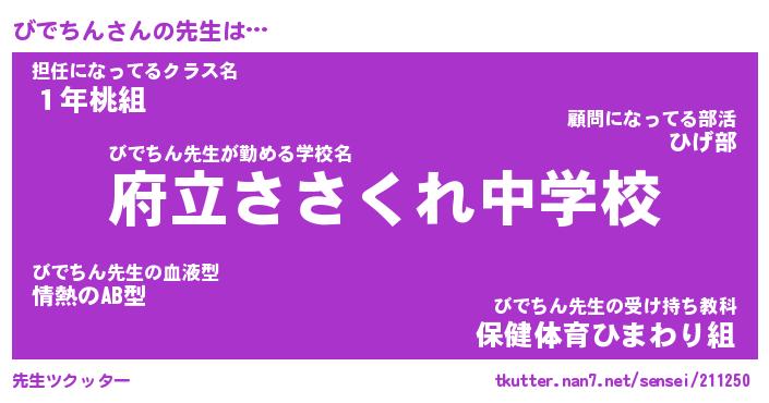 | ヘコむあだ名 | 『びでもー』『つくし』『びで太郎』 |
