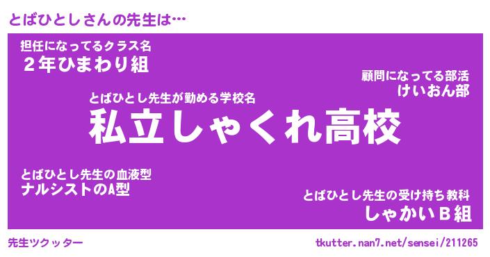 | ポケモン風あだ名 | 『トバチュウ』『トバヒダネ』 |
