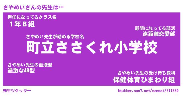 | ファンタジー風あだ名 | 『サヤフェル』『エターナルサヤメイー』 |