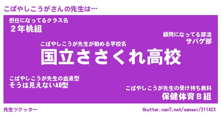 | ヘコむあだ名 | 『こばもー』『豆乳』『こばお』 |