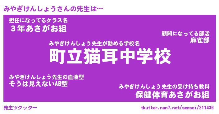 | ヘコむあだ名 | 『みやにー』『酢こんぶ』『みやっぺ』 |