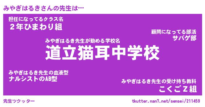 | ヘコむあだ名 | 『みやにー』『なまこ酢』『みやを』 |