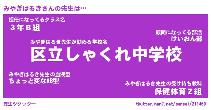 | 恥ずかしいあだ名 | 『プリティーみやぎはるき』『みやっちょ』 |