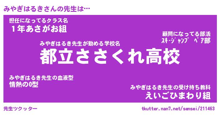 | ヒーロー風カッコイイあだ名 | 『スーパーミヤギハルキ』『銀牙騎士ミヤ』 |