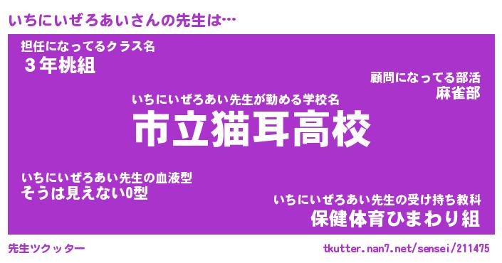 | 意味不明あだ名 | 『ペロリンいちにいぜろあい』 |