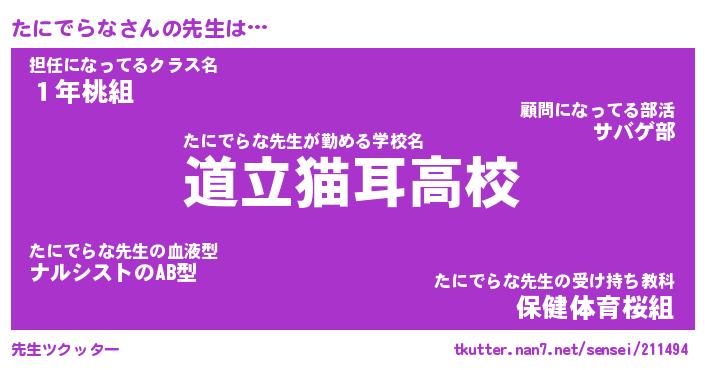 | ファンタジー風あだ名 | 『タニフェル』『エターナルタニデラナー』 |