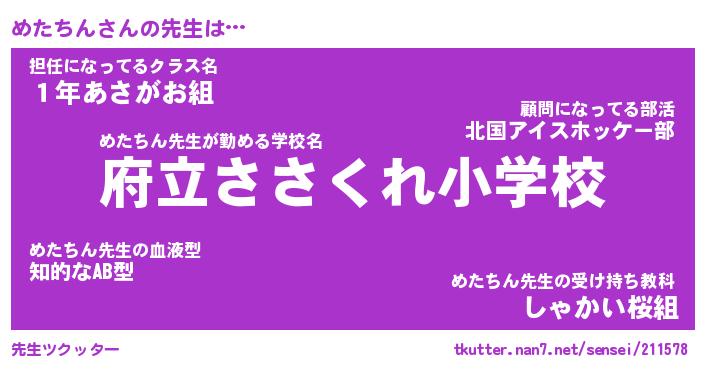 | 意味不明あだ名 | 『ペロリンめたちん』『永久保存めたちん』 |