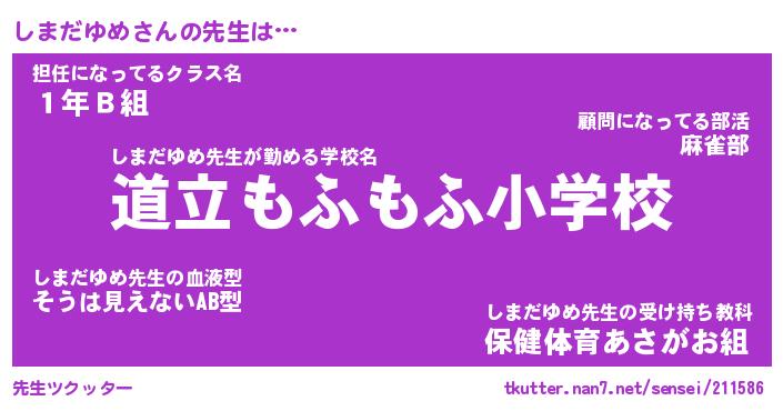 | ファンタジー風あだ名 | 『シマフェル』『エターナルシマダユメー』 |