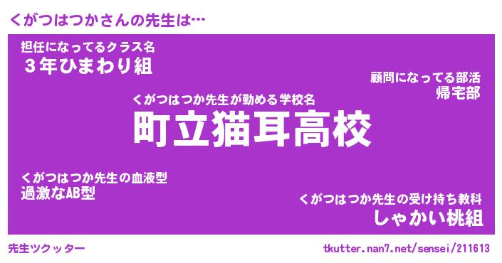 | 肩書あだ名 | 『くがつはつか社長』『くがつはつか先生』 |