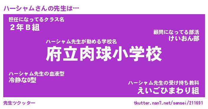 | ヒーロー風カッコイイあだ名 | 『スーパーハーシャム』『暗黒騎士ハー』 |