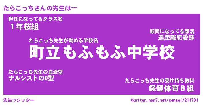 | ヘコむあだ名 | 『たらにゅー』『つくし』『たらお』 |