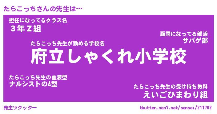| ヒーロー風カッコイイあだ名 | 『スーパータラコッチ』『幻影騎士タラ』 |