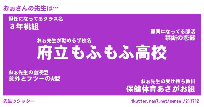 | ヘコむあだ名 | 『おぉにゅー』『酢こんぶ』 |