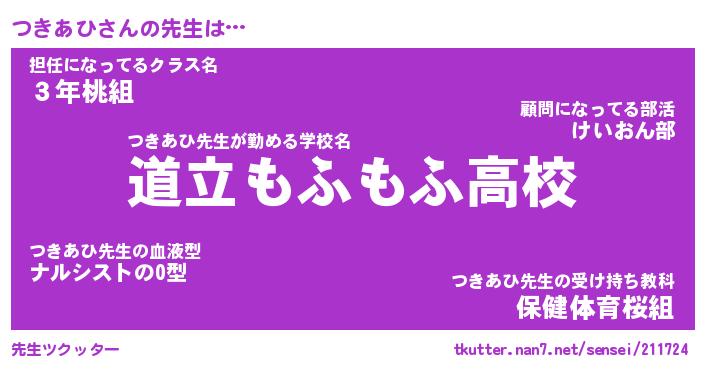| ヒーロー風カッコイイあだ名 | 『スーパーツキアヒ』『天弓騎士ツキ』 |