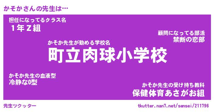 | ヘコむあだ名 | 『かそふぇ~』『なまこ酢』『かそを』 |