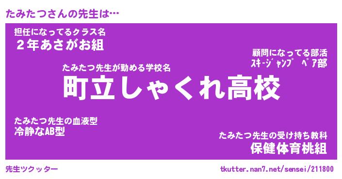 | 意味不明あだ名 | 『ペロリンたみたつ』『永久保存たみたつ』 |