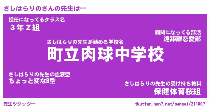 | 肩書あだ名 | 『さしはらりのCEO』『さしはらりの担任』 |