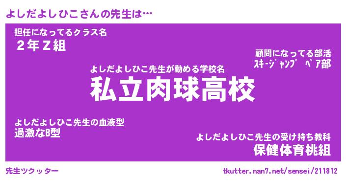 | ヘコむあだ名 | 『よしふぇ~』『なまこ酢』 |