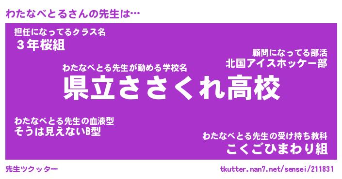 | 女子向けラノベタイトル風あだ名 | 『わたなべとる姫と円卓の騎士』 |