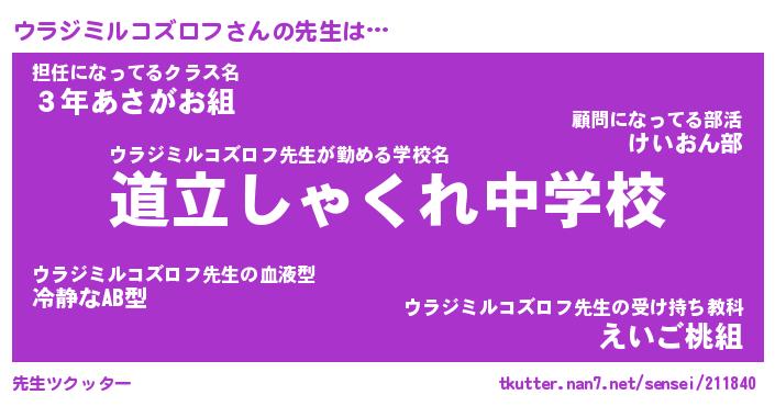 | 欧米人風あだ名 | 『マイケルウラジミルコズロフ』 |