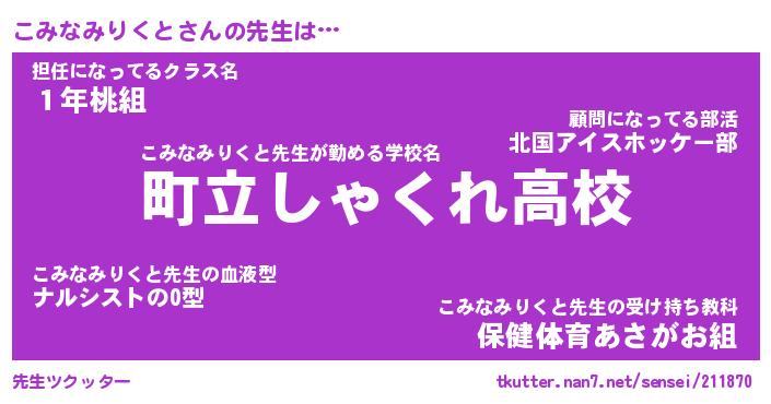 | ヘコむあだ名 | 『こみっふぃ~』『つくし』 |