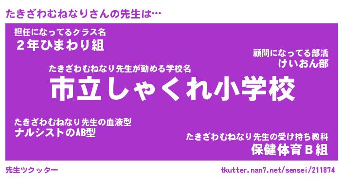 | 肩書あだ名 | 『たきざわむねなり御曹司』 |