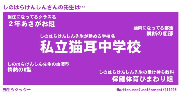 | 胡散臭い通販商品みたいなあだ名 | 『必ず成功するブレスレット…その名も「しのはらけんしん」』 |