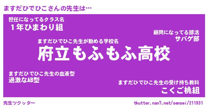 | ツイッター | ますだひでひこさんのツイッターID『namakemono_idle』 |