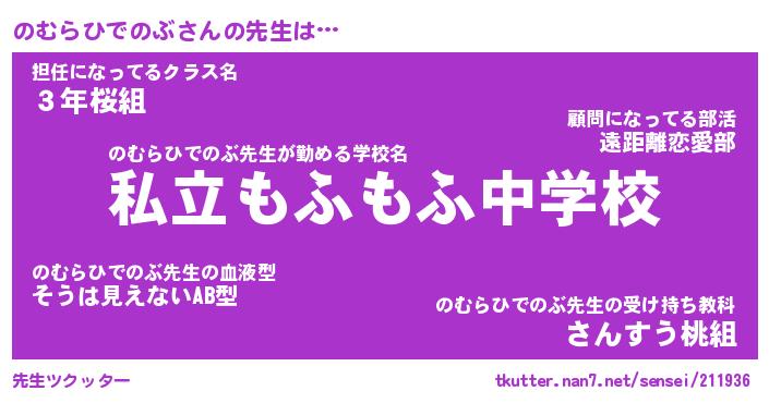 | ヘコむあだ名 | 『のむにゅー』『酢こんぶ』 |