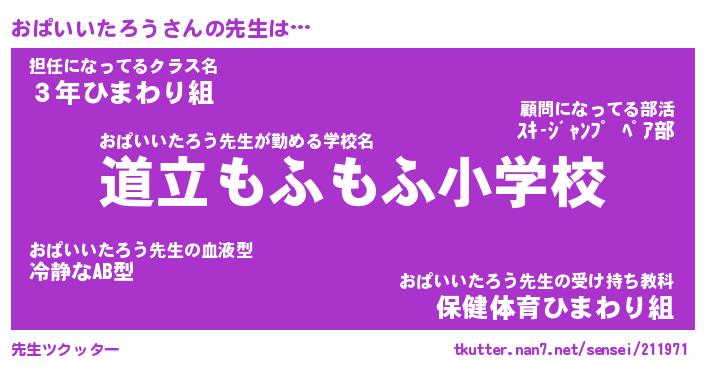 | ヘコむあだ名 | 『おぱにゅー』『つくし』『おぱっ子』 |